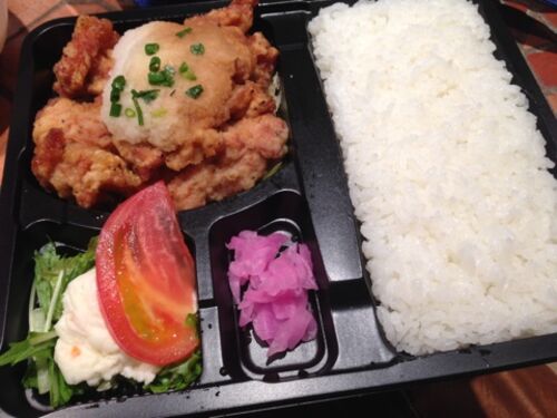 今回はこちらのお弁当を購入。 回鍋肉・油淋鶏・焼き魚など8~10種類ぐらいのお弁当があり、悩みましたがおろし唐揚げをチョイス! 『おろしポン酢の唐揚げ弁当』600円 (オススメ度:★★★☆☆) 600円なのにこのボリューム!しかもデカいお味噌汁付き。味噌汁付…
