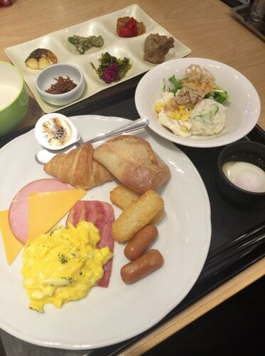 館内・客室 / 夕食 / 朝食 《朝食》 朝食は夕食同様、レストラン「プリズムガーデン」にてバイキングになります。 7~9時(最終受付8時半)の間に食事券を持って向かいます~夕飯と違い席は自由との事。朝はさすがにアルコールの飲み放題はありませんが、ソフ…